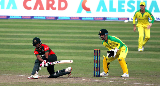 চলতি সিরিজে এটাই তার সর্বোচ্চ রান। ড্যান ক্রিস্টিয়ানকে লং অফে উড়িয়ে মারতে গিয়ে ধরা পড়েন টার্নারের হাতে। ১৮ বলে ১৬ রান করেন এই বাঁহাতি ব্যাটসম্যান। এরপর তাড়াহুড়ো করে খেলতে গিয়ে আউট হন মাহমুদউল্লাহ রিয়াদ। অ্যাগারের শর্ট লেন্থের বলে তুলে দেন তার হাতেই। ১৪ বলে ১ ছয়ের মারে ১৯ রান করেন টাইগার অধিনায়ক। এরপর নাথান এলিসের বলে নুরুল হাসান সোহান সজোরে হাঁকিয়েছিলেন লেগ সাইডে। কিন্তু বল ব্যাটে লেগে সরাসরি যায় স্ট্যাম্পে। আউট হবার আগে ১৩ বলে ৮ রান করেন সোহান। এরপর নিয়মিত বিরতিতে উইকেট হারাতে থাকে টাইগাররা