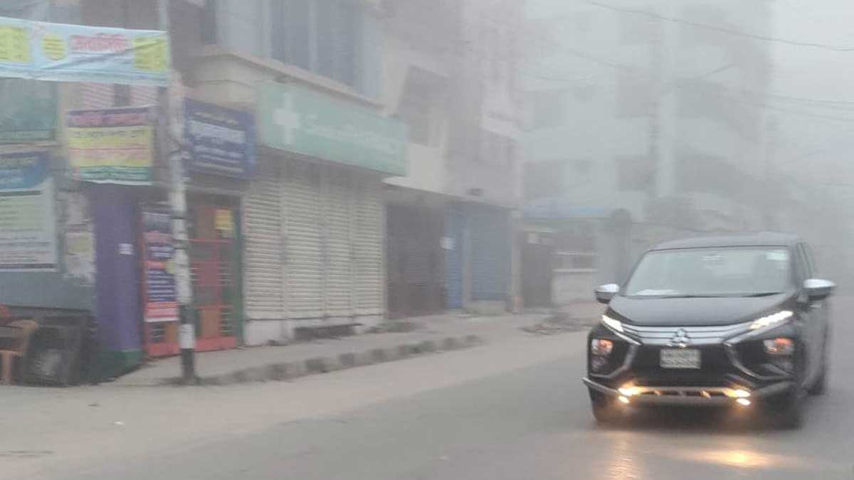 আজ ঢাকায় কুয়াশার মাত্রা অনেক বেশি, হেডলাইট জ্বালিয়ে চলছে গাড়ি