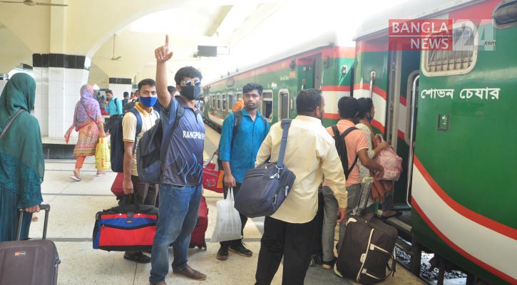সকাল ১০টা থেকে বেলা সাড়ে ১১টা পর্যন্ত রাজধানীর কমলাপুর রেলস্টেশন ঘুরে দেখা যায়, ৩ নাম্বার প্লাটফর্মে তারাকান্দিগামী অগ্নিবীণা এক্সপ্রেস, ৫ নাম্বার প্লাটফর্মে সিলেটগামী জয়ন্তিকা এক্সপ্রেস এবং ৬ নাম্বার প্লাটফর্মে কিশোরগঞ্জগামী কিশোরগঞ্জ এক্সপ্রেস দাঁড়ানো আছে। ট্রেনগুলোর প্রতিটি বগিই মানুষে প্রায় পূর্ণ। আসন তেমন একটা ফাঁকা নেই। কোনো কোনো বগিতে দাঁড়িয়েও লোকজন বাড়ির উদ্দেশ্যে যাত্রার প্রস্তুতি নিচ্ছেন। তাদের মুখে এখনও রয়েছে ঈদের হাসি।