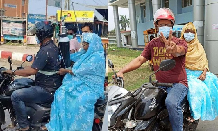 দুপুরে শ্বাসকষ্ট আরও তীব্র হয়। কিন্তু লকডাউনের কারণে তাকে হাসপাতালে নেয়ার মতো যানবাহন পাচ্ছিলেন না স্বজনরা। আবার কেউ কেউ করোনা রোগী শুনে তাদের গাড়িতে নিতে রাজি হচ্ছিল না। এ কারণে কোনো উপায় না দেখে পিঠে অক্সিজেন সিলিন্ডার বেঁধে রেহানা পারভিনকে মোটরসাইকেলযোগে বরিশাল মেডিকেলে নিয়ে আসেন জিয়াউল হাসান।