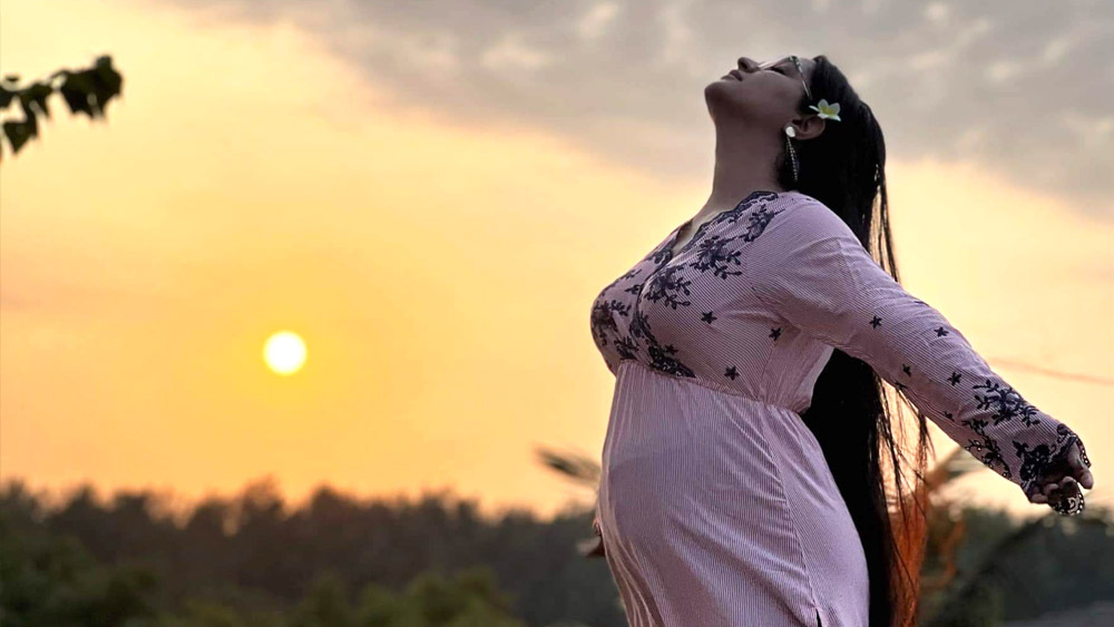 শনিবারের বিকেল ফের পরী মনির দখলে। আরও একবার গর্ভাবস্থার ছবি প্রকাশ্যে আনতেই নতুন করে ভাইরাল পরী। এদিন পরী যেন সত্যিই আকাশের পরি। পরনে ঢিলেঢালা, নরম গোলাপি রঙের পোশাক। তাতেও নায়িকার বেবি বাম্প স্পষ্ট। কোমর ছোঁয়া চুল খোলা। তাতে কাঠগোলাপ। হাতের পাতায় এখনও স্পষ্ট মেহেন্দি। দু’হাত ছড়িয়ে দিয়েছেন দু’পাশে। ঠিক যেন ডানা মেলেছেন পরী মনি। মাথার উপরে খোলা আকাশ। তার নীচে দাঁড়িয়ে টাটকা বাতাসে বুকভরে শ্বাস নিচ্ছেন। পিছনে তখন সূর্য ডোবার পালা।