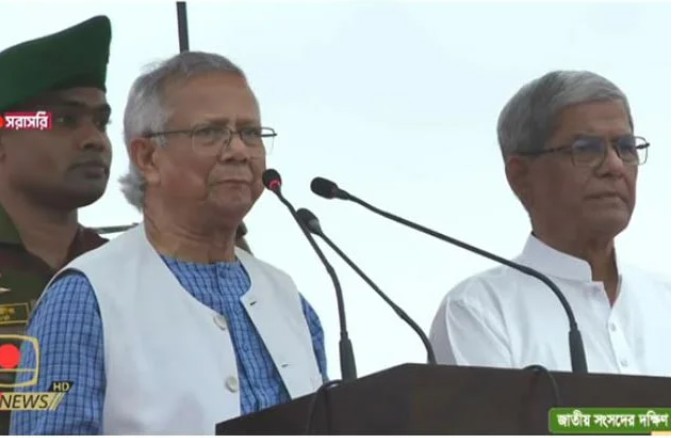 স্বৈরাচার শেখ হাসিনার পতন ও পলায়নের প্রথম বর্ষপূর্তির দিনে জুলাই ঘোষণাপত্র পাঠ করেছেন প্রধান উপদেষ্টা অধ্যাপক মুহাম্মদ ইউনূস।