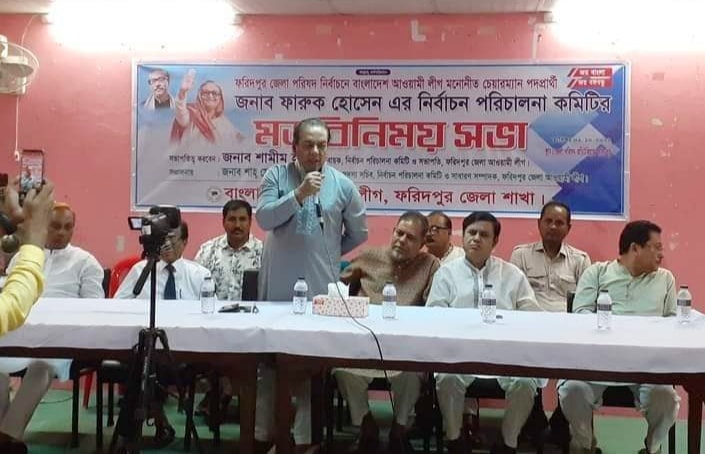 ফরিদপুর জেলা পরিষদ নির্বাচনে আওয়ামী লীগ মনোনীত চেয়ারম্যান প্রার্থী ফারুক হোসেনের নির্বাচন পরিচালনা কমিটির মতবিনিময় সভা অনুষ্ঠিত হয়েছে। রবিবার জেলা পরিষদ হলরুমে এ সভাটি অনুষ্ঠিত হয়।