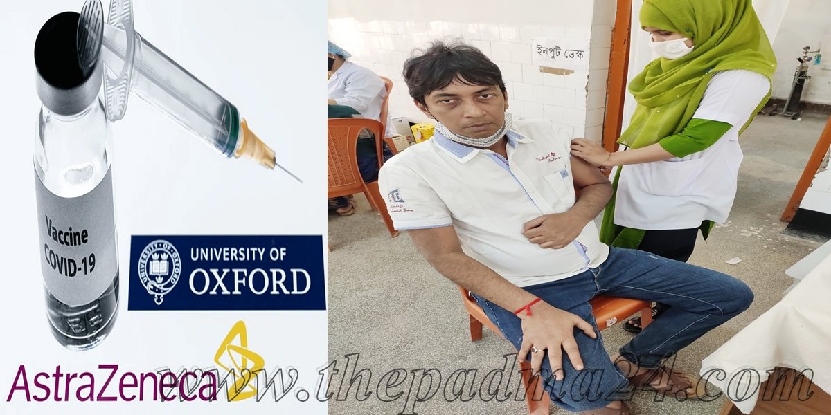 ফরিদপুর কোভিড টিকাদান কেন্দ্র থেকে টিকা গ্রহণ করছেন সুমন মজুমদার