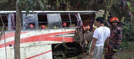 নগরকান্দায় বাস নিয়ন্ত্রণ হারিয়ে গাছের সঙ্গে ধাক্কা, চালক নিহত
