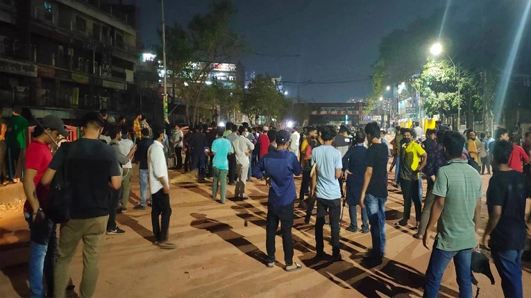 নিউ মার্কেটের ব্যবসায়ীদের সঙ্গে কয়েক দফা সংঘর্ষের পর ইফতার করেই আবারও সড়ক অবরোধ করে বিক্ষোভ করছেন ঢাকা কলেজের শিক্ষার্থীরা। সন্ধ্যা সোয়া ৭টার দিকে ঢাকা কলেজের মূল ফটকের সামনের রাস্তার দুপাশে অবস্থান নিয়ে বিক্ষোভ করছেন তারা। বর্তমানে তারা সেখানেই অবস্থান করছেন। অন্যদিকে ব্যবসায়ীরাও রয়েছেন রাস্তায়। তারা নিউ সুপার মার্কেট সংলগ্ন ফুট ওভারব্রিজের নিচে অবস্থান করছেন।