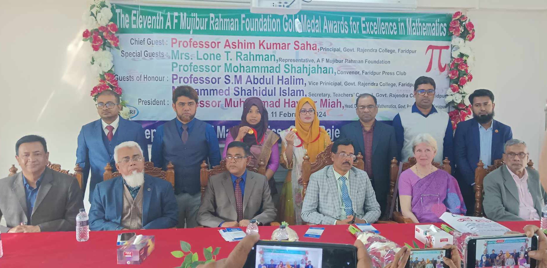 রবিবার দুপুরে সরকারি রাজেন্দ্র কলেজ, ফরিদপুর-এর শহর শাখায় ২০২০ সালের স্নাতকোত্তর পরীক্ষায় গণিতে রাজেন্দ্র কলেজ থেকে শ্রেষ্ঠ ফল লাভের জন্য এক ভরি ওজনের স্বর্ণপদক ও নগদ ১৫ হাজার টাকা লাভ করেন তানজিয়া আক্তার। ২০২১ সালে অনুষ্ঠিত স্নাতক পর্যায়ের পরীক্ষায় শ্রেষ্ঠ অর্জনকারী হিসাবে এক ভরি ওজনের স্বর্ণের পদক ও নগদ ১০ হাজার টাকা পুরস্কার লাভ করেন সুমি খাতুন।