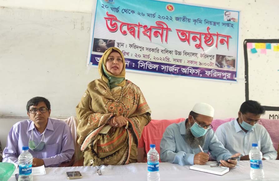 ফরিদপুরে জাতীয় কৃমি নিয়ন্ত্রন সপ্তাহের উদ্বোধন করা হয়েছে। রবিবার সকাল সাড়ে ৯টায় ফরিদপুর সরকারী বালিকা উচ্চ বিদ্যালয় মিলনায়তনে এ উপলক্ষে উদ্বোধনী অনুষ্ঠানের আয়োজন করা হয়। অনুষ্ঠানে প্রধান অতিথি হিসেবে উপস্থিত ছিলেন স্বাস্থ্য ও পরিবার কল্যান মন্ত্রনায়য়ের উপ-সচিব কাজী তাসমীম আরা আজমিরী । সিভিল সার্জন ডাঃ মোঃ সিদ্দিকুর রহমানের সভাপতিত্বে উদ্বোধনী অনুষ্ঠানে ফরিদপুরের অতিরিক্ত জেলা ম্যাজিষ্ট্রেট মোঃ লিটন আলী, জেলা শিক্ষা অফিসার বিষ্ণু পদ ঘোষাল, সরকারী বালিকা উচ্চ বিদ্যালয়ের প্রধান শিক্ষক চন্দ্র শেখর দাস, কাজী মহিউদ্দিন তসলিমসহ শিক্ষকগন উপস্থিত ছিলেন।