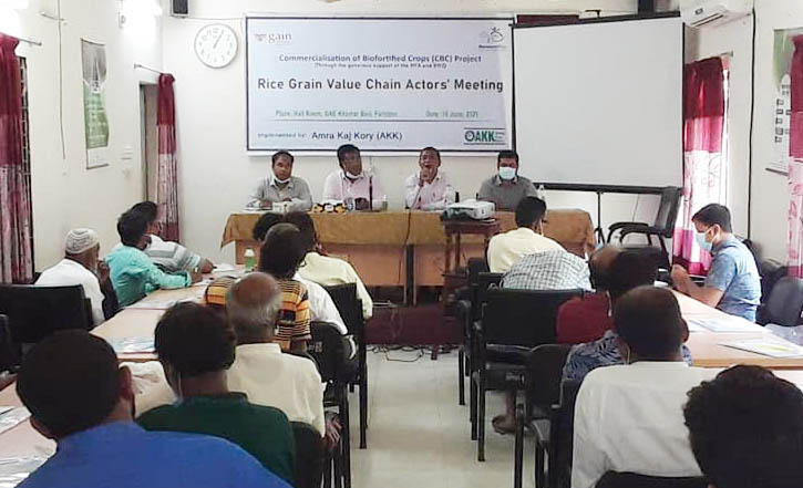 বৃহস্পতিবার(১০ জুন) শহরের টেপাখোলা খামার বাড়ি হলরুমে অনুষ্ঠিত রাইচ গেইন ভেলুচেইন এক্টর মিটিং-এ প্রধান অতিথি হিসেবে উপস্থিত ছিলেন কৃষি সম্প্রসারন অধিদপ্তর ফরিদপুরের উপ-পরিচালক ড. মোঃ হযরত আলী,বিশেষ অতিথি ছিলেন জেলা বাজার কর্মকর্তা মোঃ শাহাদত হোসেন, জেলা খাদ্য নিয়ন্ত্রক আফজাল হোসেন।আলোচনায় অংশ নেন সদর উপজেলা কৃষি কর্মকর্তা আবুল বাশার, হারভেস্ট প্লাস এর বিভাগীয় সমন্বয়কারী মোঃ জাহিদুল হোসাইন, পিও মোঃ রুহুল কুদ্দুস , একেকে’র প্রগ্রাম কো-অডিনেটর এম এ কুদ্দুস মিয়া, এবং আইটি অফিসার মোঃ রাশেদুজ্জামান মিরাজ।