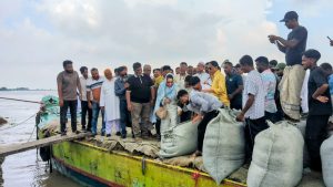 ফরিদপুরে পদ্মা নদী ভাঙ্গন রোধে জিও ব্যাগ ডাম্পিং কাজের উদ্বোধন