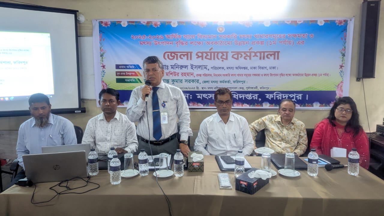 মাহবুব পিয়াল ,ফরিদপুর : ফরিদপুরে মৎস্য খামারসমূহের সক্ষমতা ও উৎপাদন বৃদ্ধির লক্ষ্যে কর্মশালা অনুষ্ঠিত হয়েছে।