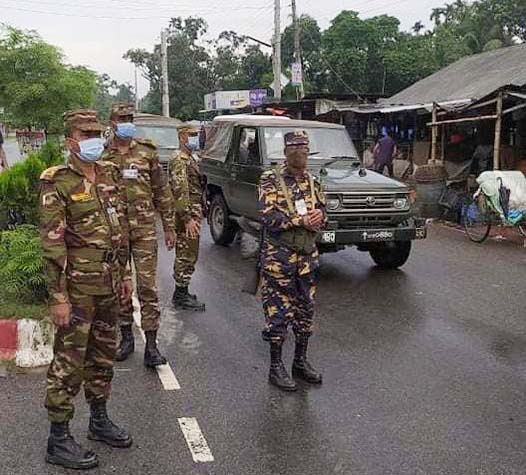 ফরিদপুরে চলমান লকডাউন পালনে পুলিশের পাশাপাশি করা করছে সেনা বাহীনির সদস্যরাও। লকডাউনের তৃতীয় দিনেও সেনা বাহীনির সদস্যরা শহরের বিভিন্ন স্থানে চেক পোস্ট বসিয়ে লকডাউন চলাকালে বাইরে আসা মানুষজন ও পরিবহন তল্লাশি চালিয়েছে। এসময় অকারণে বাইরে বের হওয়া মানুষদের ফিরিয়ে দেয়ার পাশাপাশি, জরূরী প্রয়োজনে যারা বাইরে এসেছেন তাদের সহযোগীতা করেন।