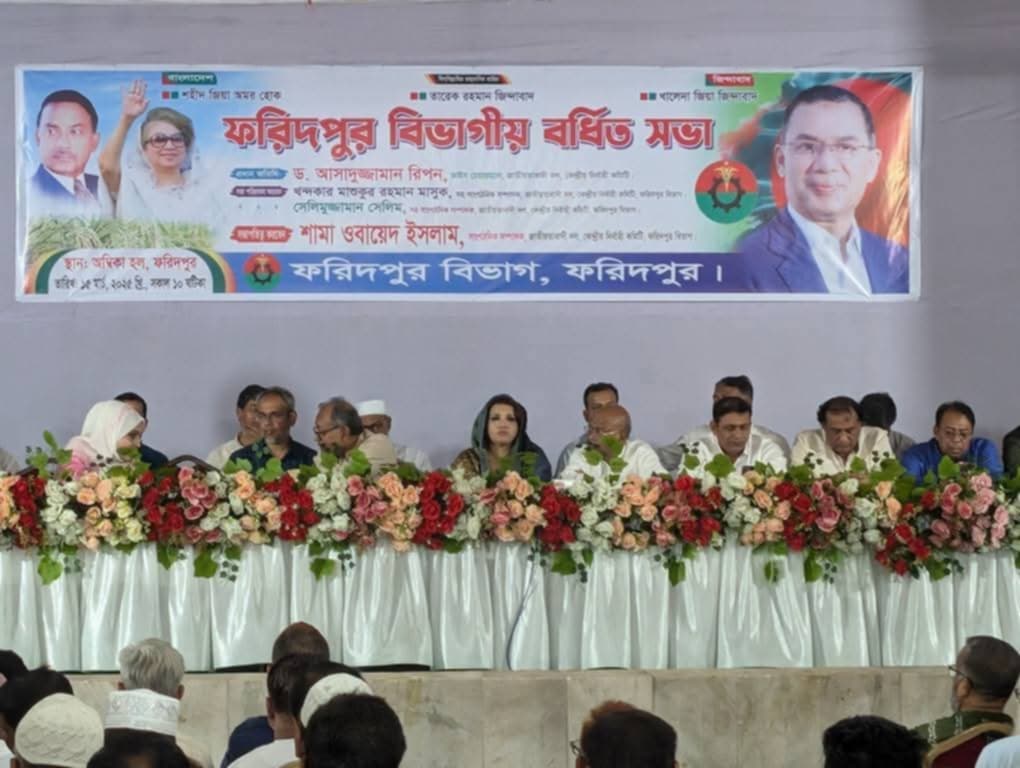 ফরিদপুর প্রতিনিধি: বিএনপির ফরিদপুর বিভাগীয় বর্ধিত সভা শনিবার ১৫ ই মার্চ অম্বিকা মেমোরিয়াল হলে অনুষ্ঠিত হয় ।বর্ধিত সভাটি বিএনপির কেন্দ্রীয় কমিটির সাংগঠনিক সম্পাদক শামা ওবায়েদ এর সভাপতিত্বে অনুষ্ঠিত হয়েছে। সভার প্রধান অতিথি হিসেবে উপস্থিত ছিলেন বিএনপির কেন্দ্রীয় কমিটির ভাইস চেয়ারম্যান ড. আসাদুজ্জামান রিপন। বিশেষ অতিথি হিসেবে উপস্থিত ছিলেন বিএনপির কেন্দ্রীয় কমিটির সহ সাংগঠনিক সম্পাদক খন্দকার মাশুকুর রহমান মাশুক,সহ সাংগঠনিক সম্পাদক সেলিমুজ্জামান সেলিম।