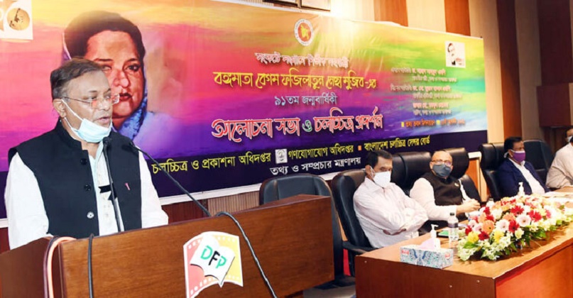 তথ্যমন্ত্রী সন্ধ্যায় রাজধানীর  কাকরাইলে তথ্য ভবন মিলনায়তনে তথ্য মন্ত্রণালয়ের তিন সংস্থা চলচ্চিত্র ও প্রকাশনা অধিদফতর, গণযোগাযোগ অধিদফতর ও চলচ্চিত্র সেন্সর বোর্ড আয়োজিত ‘সংকটে সংগ্রামে নির্ভীক সহযাত্রী বঙ্গমাতা শেখ ফজিলাতুন নেছা মুজিব এর ৯১তম জন্মবার্ষিকী উপলক্ষে আলোচনা সভা ও চলচ্চিত্র প্রদর্শন’ শীর্ষক অনুষ্ঠানে প্রধান অতিথির বক্তৃতায় একথা বলেন।
