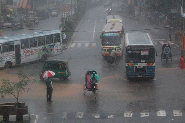 সকাল থেকে রাজধানীসহ দেশের বেশির ভাগ এলাকা খরতাপে পুড়েছে। সর্বোচ্চ তাপমাত্রা ছিল দাবদাহের কাছাকাছি, প্রায় ৩৬ ডিগ্রি সেলসিয়াস। যশোরে দেশের সর্বোচ্চ তাপমাত্রা ৩৮ ডিগ্রি সেলসিয়াসে পৌঁছেছিল। কিন্তু দুপুর গড়িয়ে বিকেল হতে না হতে আকাশের রং পাল্টে যায়। কালো মেঘে ঢেকে গিয়ে রাজধানীজুড়ে নামল অঝোরধারায় বৃষ্টি।