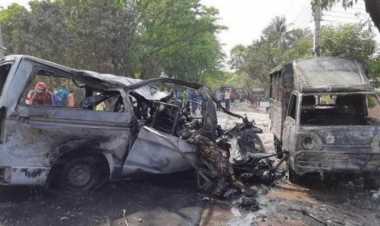 বাস-মাইক্রোবাস-লেগুনার সংঘর্ষ, সিলিন্ডার বিস্ফোরণে নিহত ৯