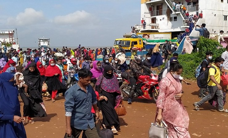 মুন্সীগঞ্জের শিমুলিয়া ও মানিকগঞ্জের পাটুরিয়া ফেরিঘাটে দেখা গেছে ঘরমুখো মানুষের উপচেপড়া ভিড়। মানুষের চাপে ঘাট ব্যবস্থাপনা পুরোপুরি ভেঙে পরেছে। ফেরি সংকটের কারণে ঘরমুখো চরম ভোগান্তির মধ্যে পড়েছে যাত্রীরা। সব ঘাটে মোটরসাইকেল ও প্রাইভেটকারের বেশি চাপ আছে।