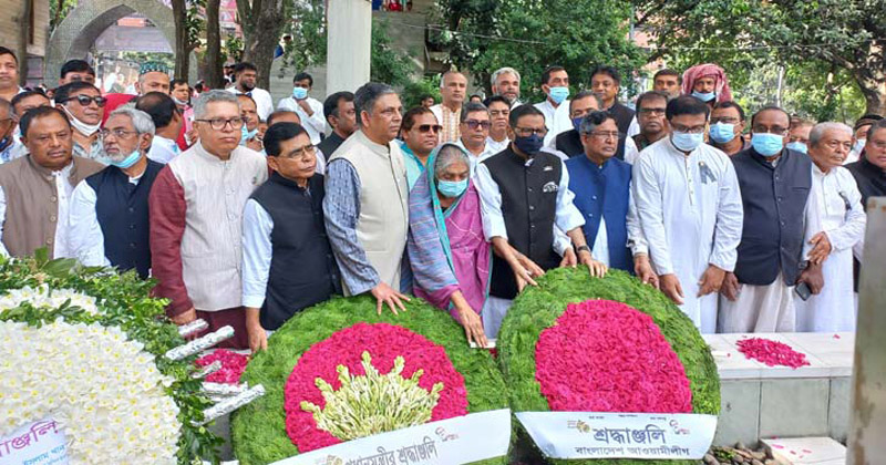 এ উপলক্ষে রাজধানীর বনানী কবরস্থানে সকাল ৮টা ৩৫ মিনিটে তার সমাধিতে প্রধানমন্ত্রী ও বাংলাদেশ আওয়ামী লীগের তরফ থেকে শ্রদ্ধা নিবেদন ও পুষ্পস্তবক অর্পণ করেছেন দলের বর্ষীয়ান রাজনীতিবিদ ও সাধারণ সম্পাদক সড়ক পরিবহন ও সেতুমন্ত্রী ওবায়দুল কাদের, প্রেসিডিয়াম সদস্য বেগম মতিয়া চৌধুরী, কৃষিমন্ত্রী ড. মো. আবদুর রাজ্জাক, যুগ্ম সাধারণ সম্পাদক মাহবুব-উল-আলাম হানিফ, যুব ও ক্রীড়া প্রতিমন্ত্রী জাহিদ আহসান রাসেল, ব্যারিস্টার বিপ্লব বড়ুয়াসহ আওয়ামী লীগ, অঙ্গ ও সহযোগী সংগঠনের নেতা-কর্মীরা।