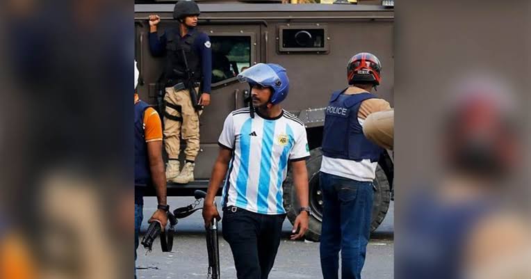 রাজধানীর নয়াপল্টনে বিএনপি কার্যালয়ের সামনে সংঘর্ষের সময় অস্ত্রহাতে আর্জেন্টিনার জার্সি পরা এক যুবককে দেখা যায়। তাকে খুঁজছে পুলিশ।