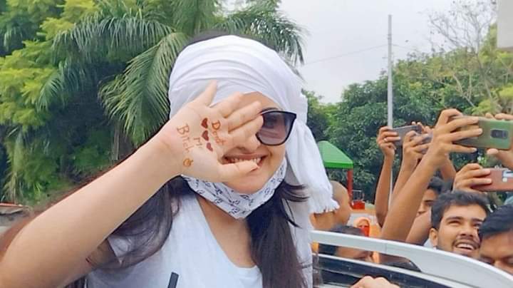 সাতাশ দিন পর কারাগারের বাইরে বের হওয়া অভিনেত্রীর ওই লেখা এবং ছাদখোলা গাড়িতে তার অভিব্যক্তি সামাজিক মাধ্যমে ভাইরাল হয়, অনেকেই এসব ছবি শেয়ার করতে শুরু করেন।